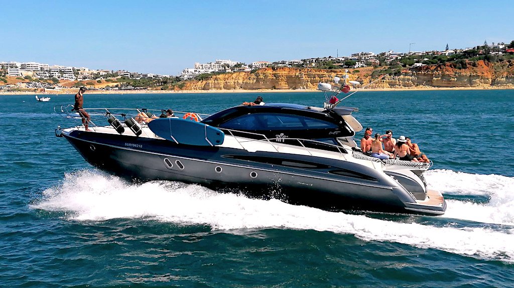 Karma II is a Cranchi Mediterranee 47' HT motoryacht available for charter in Lagos, Portugal.